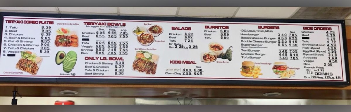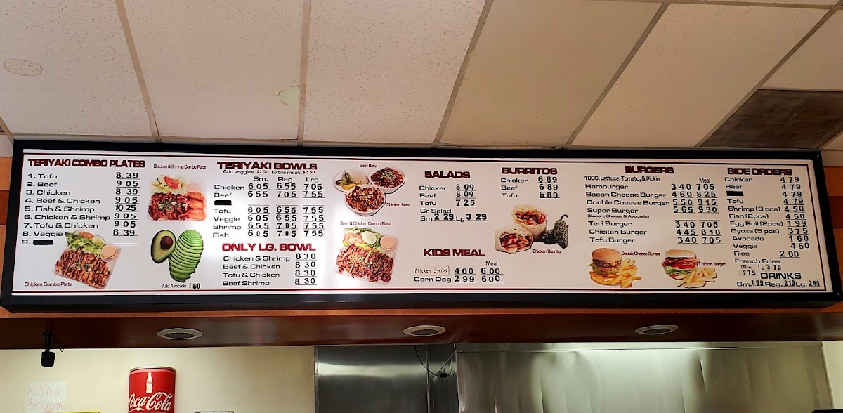 The menu showcases a delightful selection of salads too, with the Chicken Salad and Beef Salad making healthy eating both delicious and satisfying. Each dish promises tender meat, rich flavors, and generous portions, often enough for two meals. Fast service further enhances the experience, ensuring you enjoy great food without the wait. The Spot Teriyaki & Burgers is a must-visit for anyone craving a unique twist on classic comfort food!